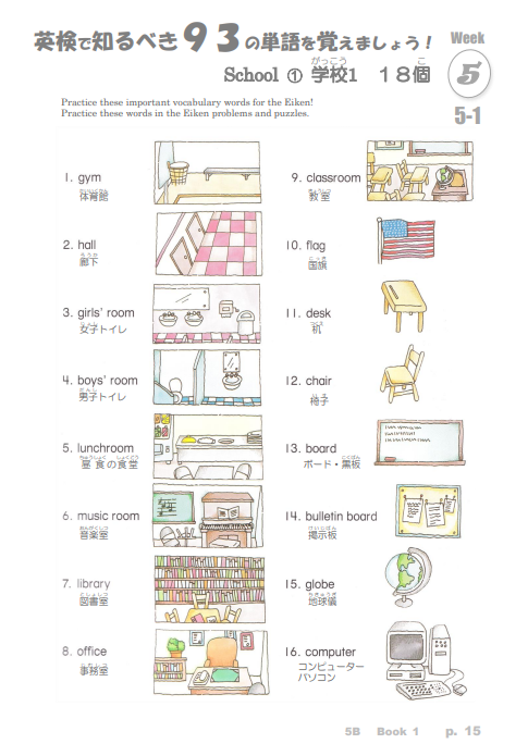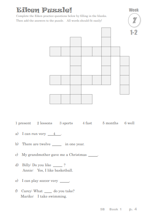 英検対策コースのテキストは、過去3回に出された単語をパズルの中で覚えたり、問題の中で何度もくりかえすことで身につくように作られていて、保護者のみなさまから大好評です!